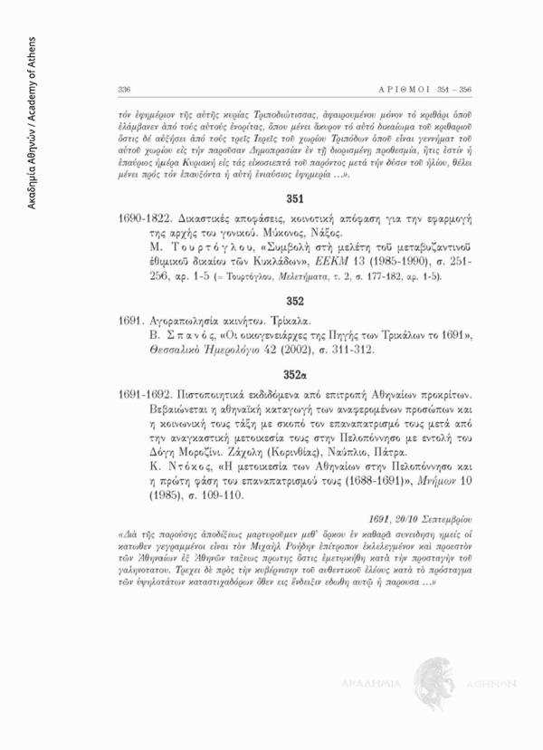 Βλέπε την εκτενή εισαγωγή (ελληνόγλωσση και ξενόγλωσση) και τις αρχές της έκδοσης στη Συλλογή, Μελέτες Ιστορίας Δικαίου (Παπαρρήγα-Αρτεμιάδη Λυδία, Εισαγωγή, Πραγματεῖαι της Ἀκαδημίας Ἀθηνῶν, τ. 63 (2011), σσ. 109-164 του έργου).
