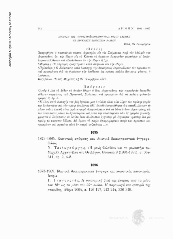 Βλέπε την εκτενή εισαγωγή (ελληνόγλωσση και ξενόγλωσση) και τις αρχές της έκδοσης στη Συλλογή, Μελέτες Ιστορίας Δικαίου (Παπαρρήγα-Αρτεμιάδη Λυδία, Εισαγωγή, Πραγματεῖαι της Ἀκαδημίας Ἀθηνῶν, τ. 63 (2011), σσ. 109-164 του έργου).