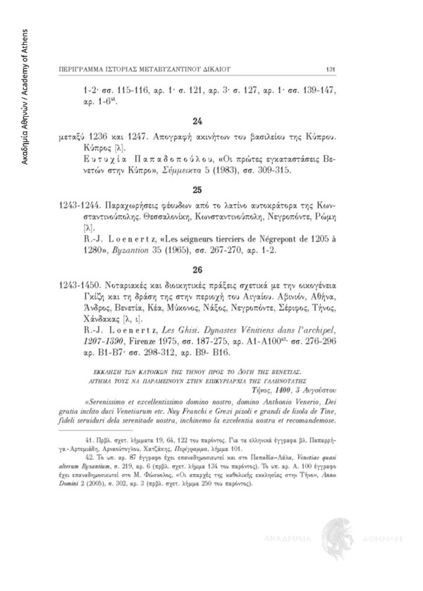 Περίγραμμα Ιστορίας του Μεταβυζαντινού Δικαίου του Λατινοκρατούμενου Ελληνισμού. Τα Λατινικά, Ιταλικά και Γαλλικά κείμενα