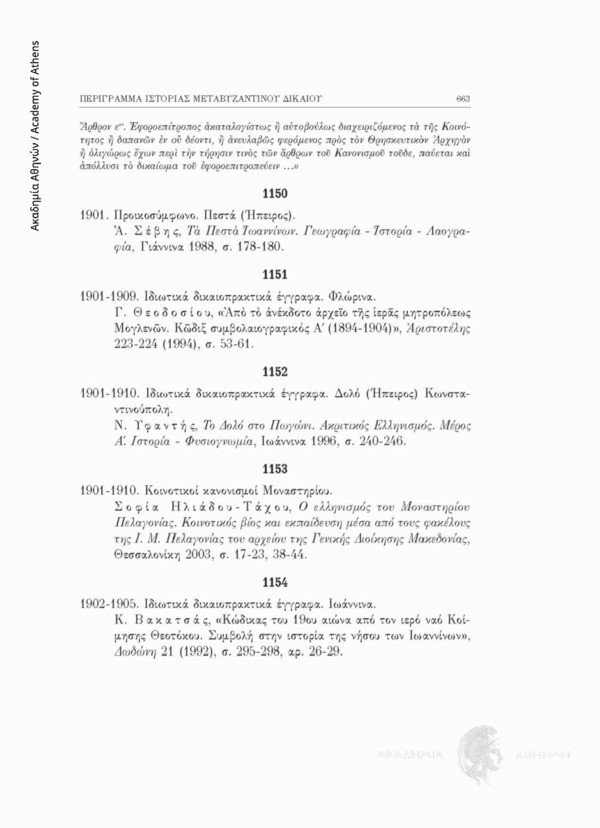 14. Βλέπε την εκτενή εισαγωγή (ελληνόγλωσση και ξενόγλωσση) και τις αρχές της έκδοσης στη Συλλογή, Μελέτες Ιστορίας Δικαίου (Παπαρρήγα-Αρτεμιάδη Λυδία, Εισαγωγή, Πραγματεῖαι της Ἀκαδημίας Ἀθηνῶν, τ. 63 (2011), σσ. 109-164 του έργου). Βλέπε βιβλιογραφία και συντομογραφίες στις σελ. 9-108 του έργου. Βλέπε ευρετήρια τόπων, Παραρτήματα πηγών σε περίληψη και ξενόγλωσσων πηγών σε μετάφραση και χρονολόγιο στις σελ. 685-726 του έργου