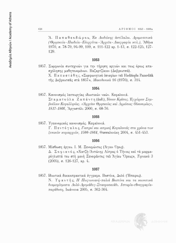 14. Βλέπε την εκτενή εισαγωγή (ελληνόγλωσση και ξενόγλωσση) και τις αρχές της έκδοσης στη Συλλογή, Μελέτες Ιστορίας Δικαίου (Παπαρρήγα-Αρτεμιάδη Λυδία, Εισαγωγή, Πραγματεῖαι της Ἀκαδημίας Ἀθηνῶν, τ. 63 (2011), σσ. 109-164 του έργου). Βλέπε βιβλιογραφία και συντομογραφίες στις σελ. 9-108 του έργου. Βλέπε ευρετήρια τόπων, Παραρτήματα πηγών σε περίληψη και ξενόγλωσσων πηγών σε μετάφραση και χρονολόγιο στις σελ. 685-726 του έργου