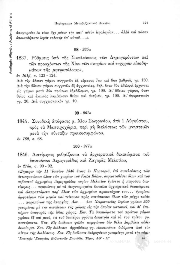 Συνοδική απόφασις μ. Χίου Σωφρονίου, από 1 Αυγούστου, προς τα Μαστιχοχώρια, περί μη διαλύσεως των μνηστείων μετά την σύνταξιν προικοσυμφώνου - Identifier: 140225