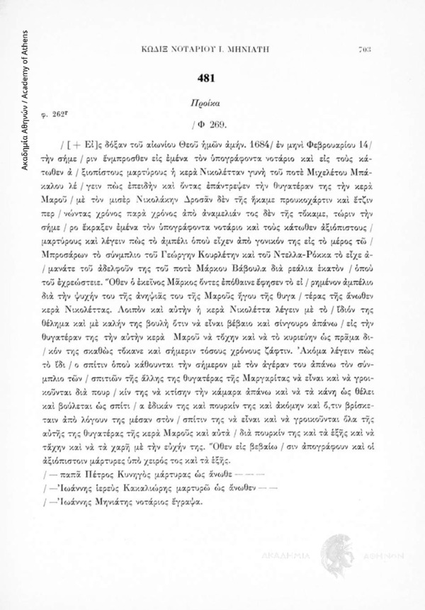 Βλέπε τον σχολιασμό και τον τρόπο έκδοσης που προτάσσονται της εκδόσεως των εγγράφων στη Συλλογή Μελέτες Ιστορίας Δικαίου, (Αναστασία Σιφωνιού-Καράπα, Γεώργιος Ε. Ροδολάκης, Λυδία Παπαρρήγα-Αρτεμιάδη, Ὁ κώδικας τοῦ νοταρίου Νάξου Ἰωάννου Μηνιάτη 1680-1689 (χφ. Γ.Α.Κ. 86), (ΕΚΕΙΕΔ 29-30), Αθήνα 1982-1983, σσ. 125-128).