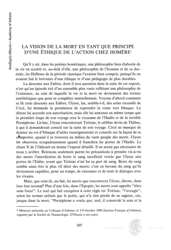 Ο Όμηρος, πρώτος μεγάλος πολιτικός στοχαστής —ή, απλά, στοχαστής όλης της ανθρωπότητας— ανοίγει νέες οδούς με ποικίλες κατευθύνσεις. Αξίζει πράγματι να πορευθεί κανείς σ΄ αυτούς τους δρόμους με αφετηριακό σημείο μια θεμελιακή φιλοσοφία της ζωής και του θανάτου.
