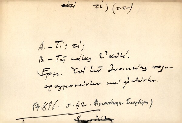 - Α. -Τί; Τι; Β. -Της κακίας τ' αυτή