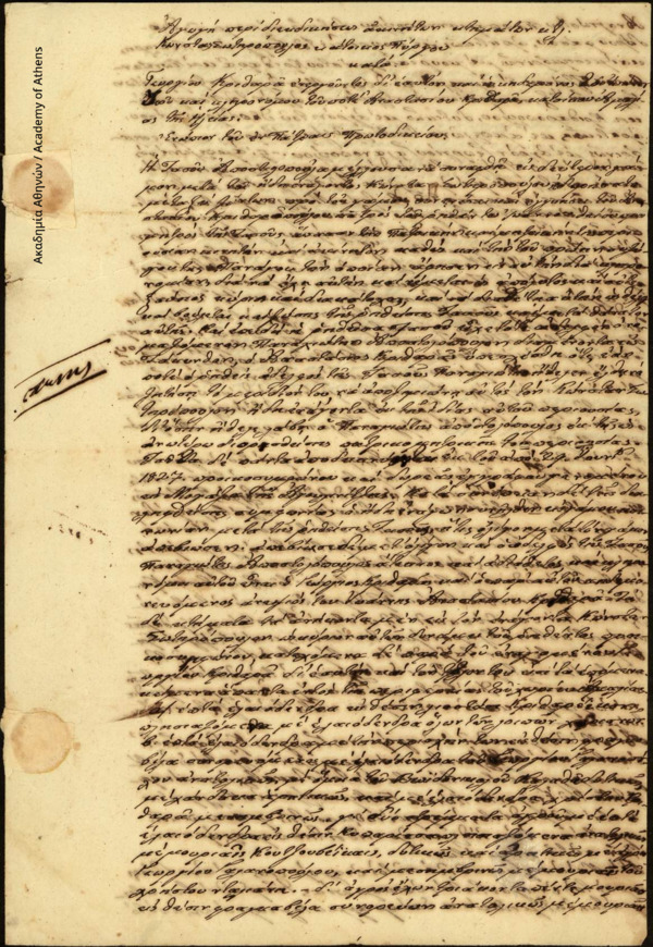Αγωγή περί διεκδικήσεως ακίνητων κτημάτων κτλ. του Κωνσταντίνου Σωτηρόπουλου κατά του Γεωργίου Κριθαρά ενεργούντος δι εαυτού και κληρονόμου του Ιωάννη υιού και κληρονόμου του μακαρίτη Αναστασίου Κριθαρά. - Identifier: 227369