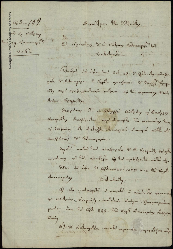 Απόφαση του Προέδρου του Πρωτοδικείου Πατρών Ν. Μανιάκη σχετικά με την αναφορά του δικηγόρου Στ. Γαλάτη πληρεξούσιου του Βασίλειου Κρεστενίτη περί προφυλακτικών μέτρων επί της περιουσίας του Ανδρέα Κρεστενίτη.