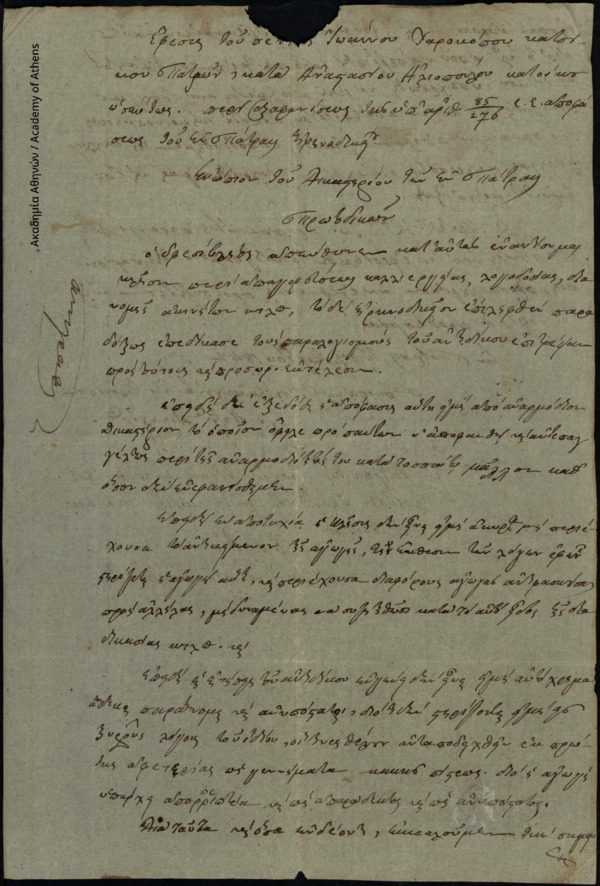 Έφεσις (σχέδιο) του Ιωάννου Χαροκόπου κατά Αναστασίου Ηλιοπούλου περί εξαφανίσεως της παρεμπιπτούσης αποφάσεως του Ειρηνοδικείου Πατρών ενώπιον του Πρωτοδικείου Πατρών, που αφορά στην υπόθεση αυθαίρετης… - Identifier: 229813