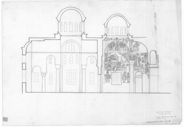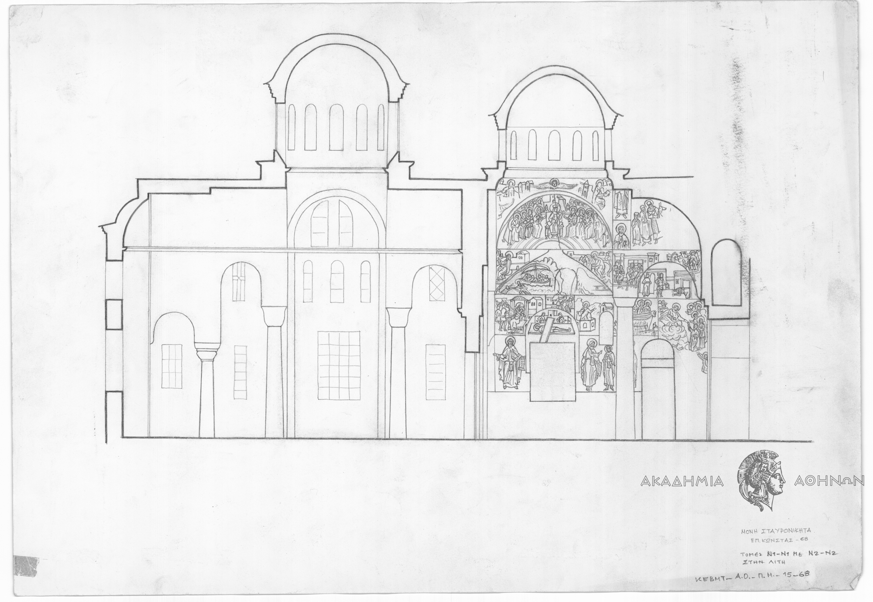 Μονή Σταυρονικήτα, Καθολικό. Κατά μήκος τομή Ν1-Ν1 εμπλεκόμενη με την Ν2-Ν2 - Identifier: 264964