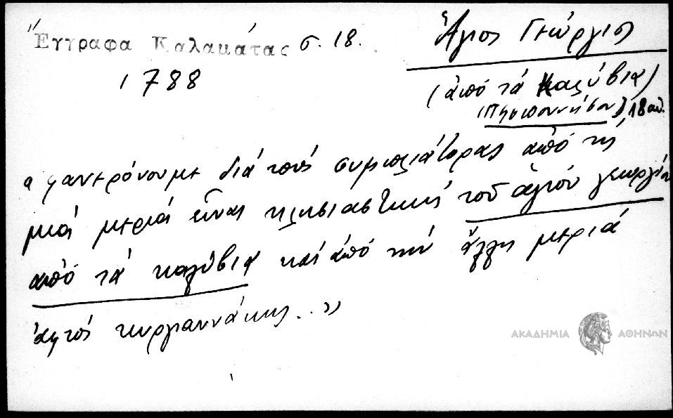 - "φανερόνουμε δια τους συμπλιάτορας από τη μιά μεριά είναι κλησιαστική του αγίου γεωργίου από τα καλύβια και από την άλλη μεριά αφτός κυργιαννάκης."