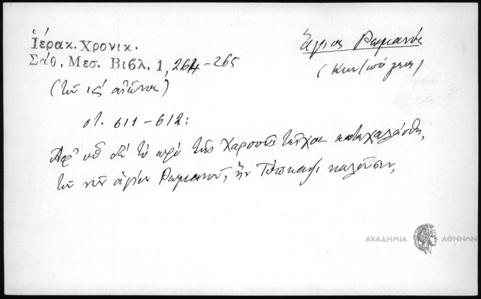 - Προσωπογραφικό και τοπωνυμικό αρχείο (15ος-19ος αι.)