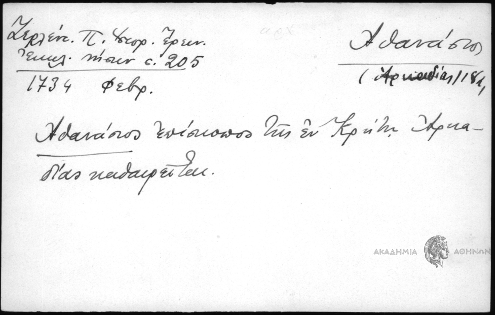 - Προσωπογραφικό και τοπωνυμικό αρχείο (15ος-19ος αι.)