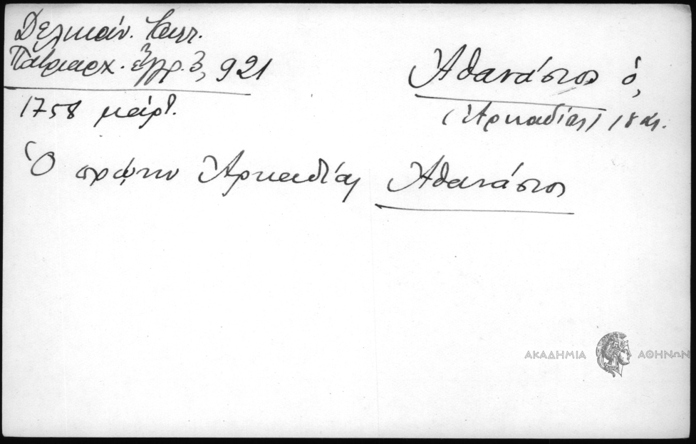 - Προσωπογραφικό και τοπωνυμικό αρχείο (15ος-19ος αι.)