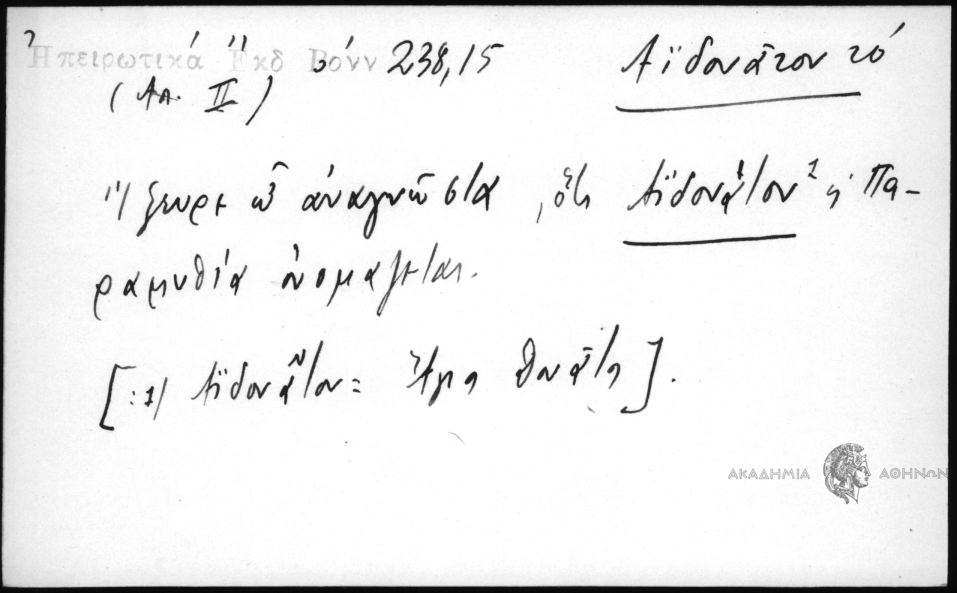 - Ίξευρε ω αναγνώστα, ότι Αϊδονάτον (1) η Παραμυθία ονομάζεται. [(1): Αϊδονάτον: Άγιος Δονάτος)