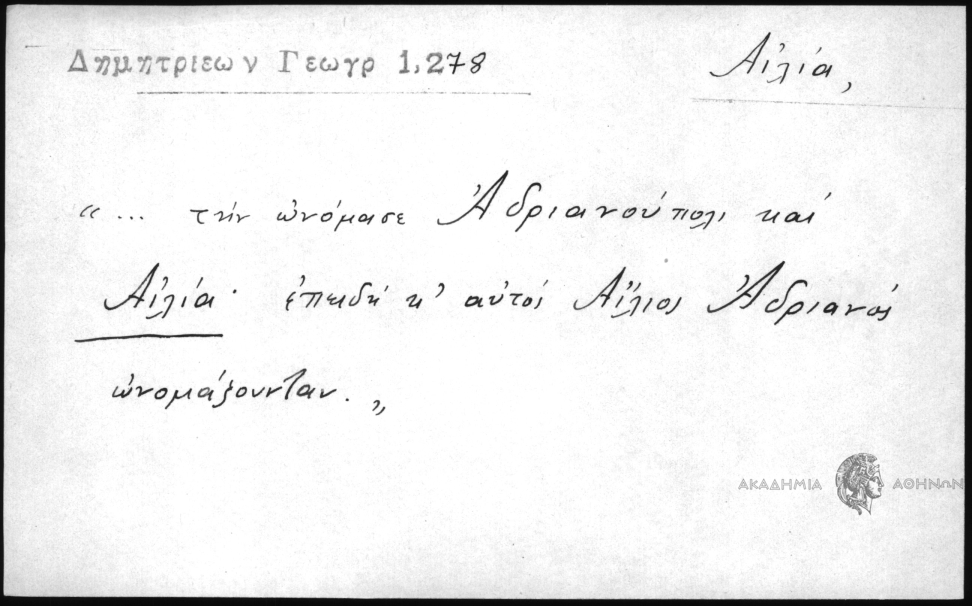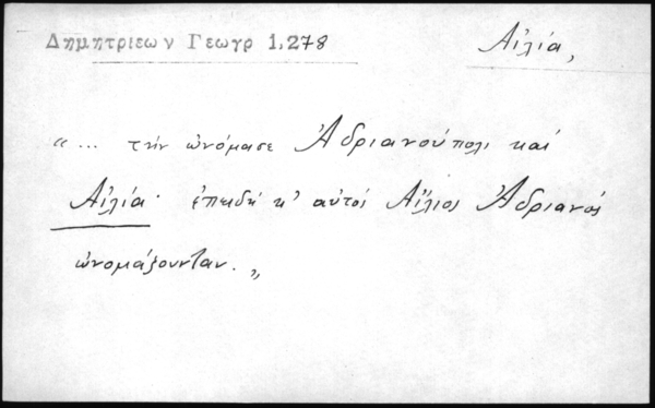 - "...την ωνόμασε Αδριανούπολι και Αιλία, επειδή και αυτός Αίλιος Αδριανός ωνομάζούνταν."