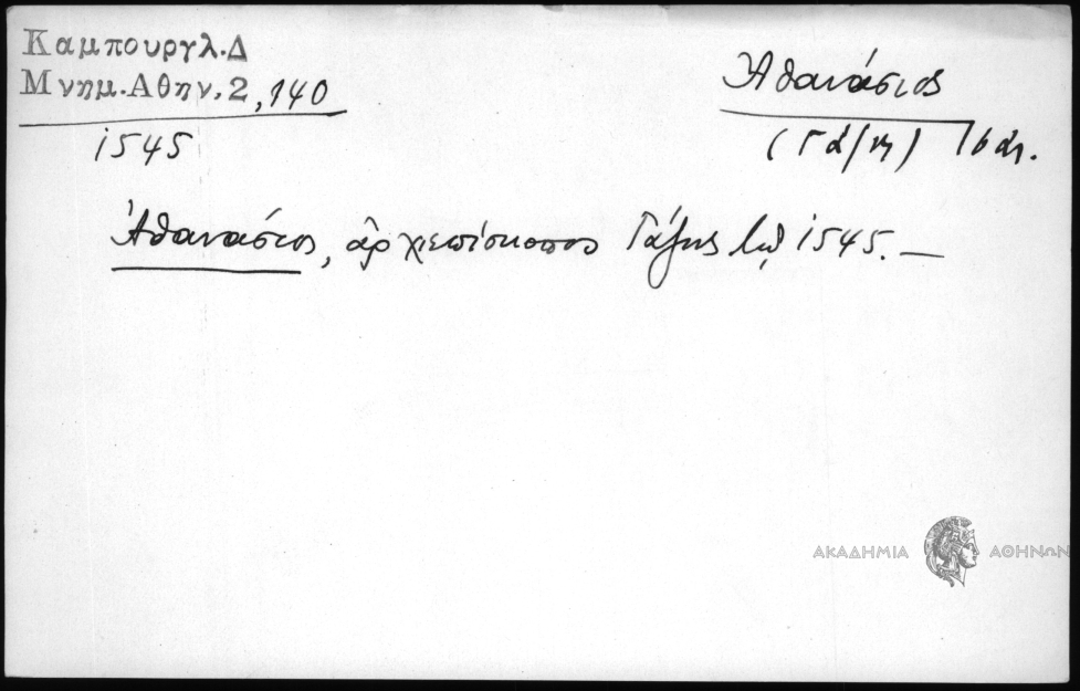 - Αθανάσιος, αρχιεπίσκοπος Γάζης τω 1545.