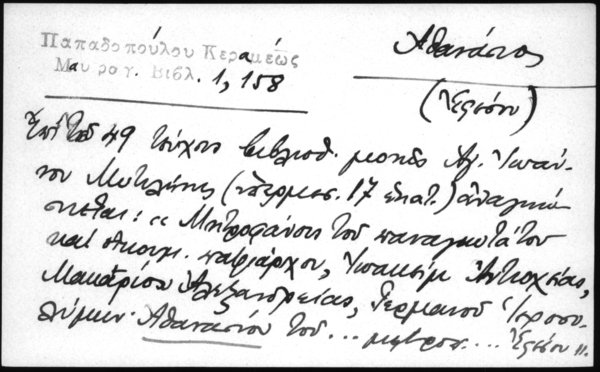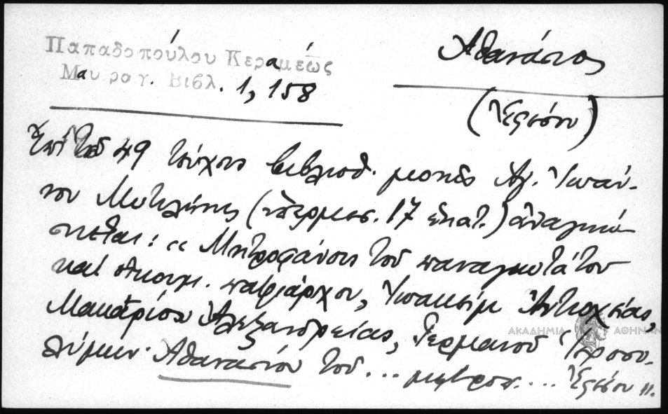 - Επί του 49 τεύχους βιβλιοθ. μονής Αγ. Ιωάννου Μυτιλήνης ([υπερμεσ.] 17 εκατ.) αναγινώσκεται : "Μητροφάνους του παναγιωτάτου και οικουμ. πατριάρχου, Ιωακείμ Αντιοχείας, Μακαρίου Αλεξανδρείας, Γερμανού Ιεροσολύμων. Αθανασίου του ... μητροπ. Εφέσου".