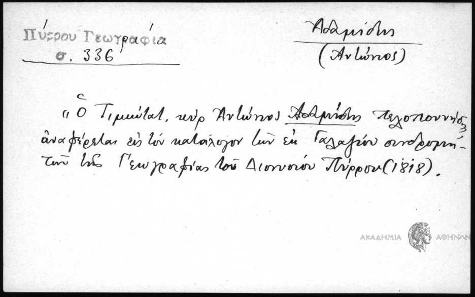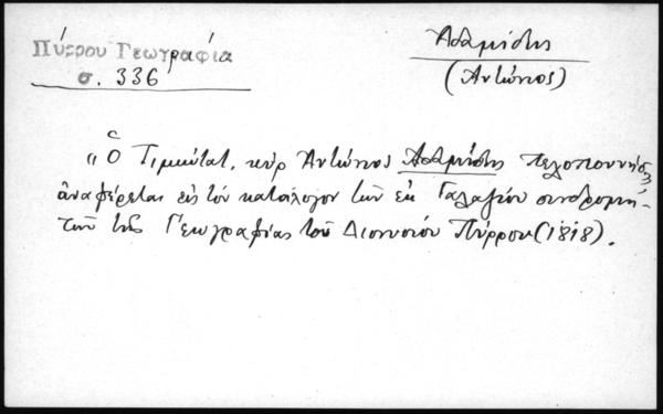 Συνδρομή του Αντωνίου Αδαμίδη στη "Γεωγραφία" του Διονυσσίου Πύρρου