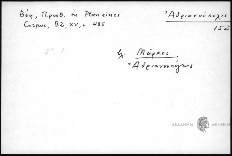 - Προσωπογραφικό και τοπωνυμικό αρχείο (15ος-19ος αι.)
