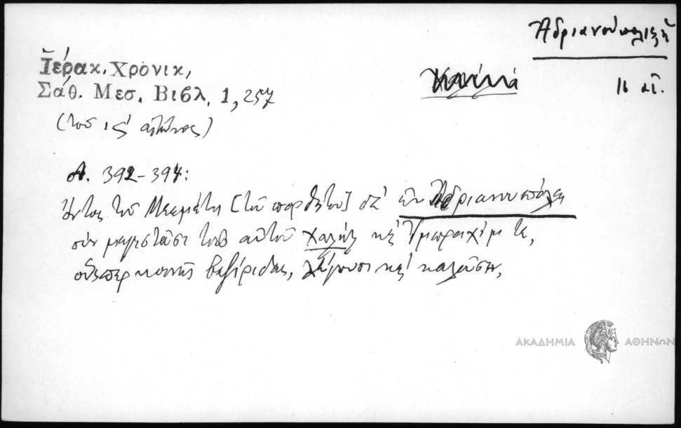 - Προσωπογραφικό και τοπωνυμικό αρχείο (15ος-19ος αι.)
