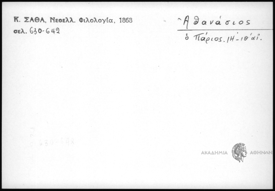 - Προσωπογραφικό και τοπωνυμικό αρχείο (15ος-19ος αι.)