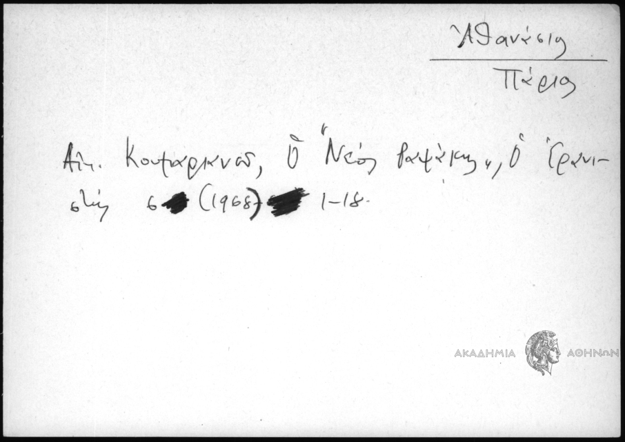 - Αικ. Κουμαριανού, Ο "Νέος Ραψάκης", Ο Ερανιστής 6 (1968), 1-18