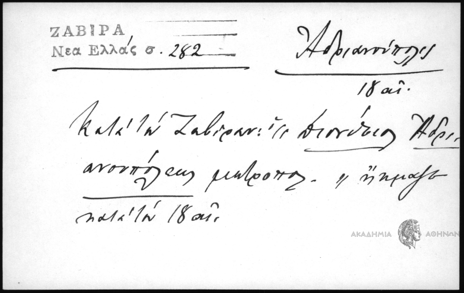 - Προσωπογραφικό και τοπωνυμικό αρχείο (15ος-19ος αι.)