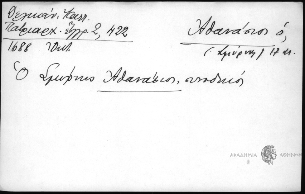 - Προσωπογραφικό και τοπωνυμικό αρχείο (15ος-19ος αι.)