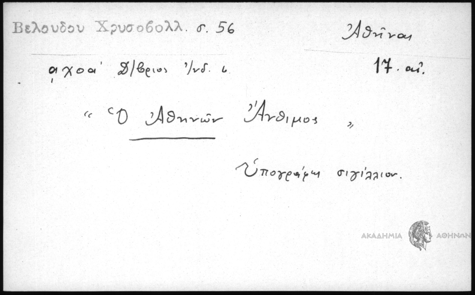 - "Ο Αθηνών Άνθιμος" υπογράφει σιγίλλιον.