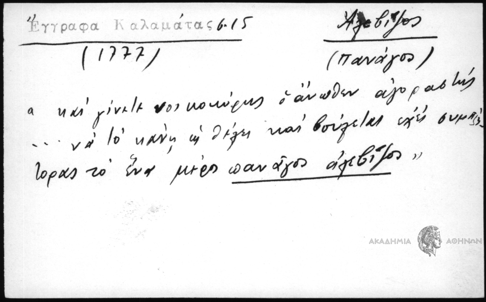 - "Και γίνετε νοικοκύρης ο άνωθεν αγοραστής...να το κάνη ως θέλει και βούλεται έχει συμπλήτορας το ένα μέρος πανάγος αλεβίζος".