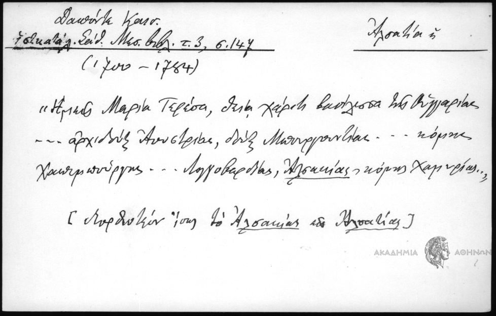 - Προσωπογραφικό και τοπωνυμικό αρχείο (15ος-19ος αι.)