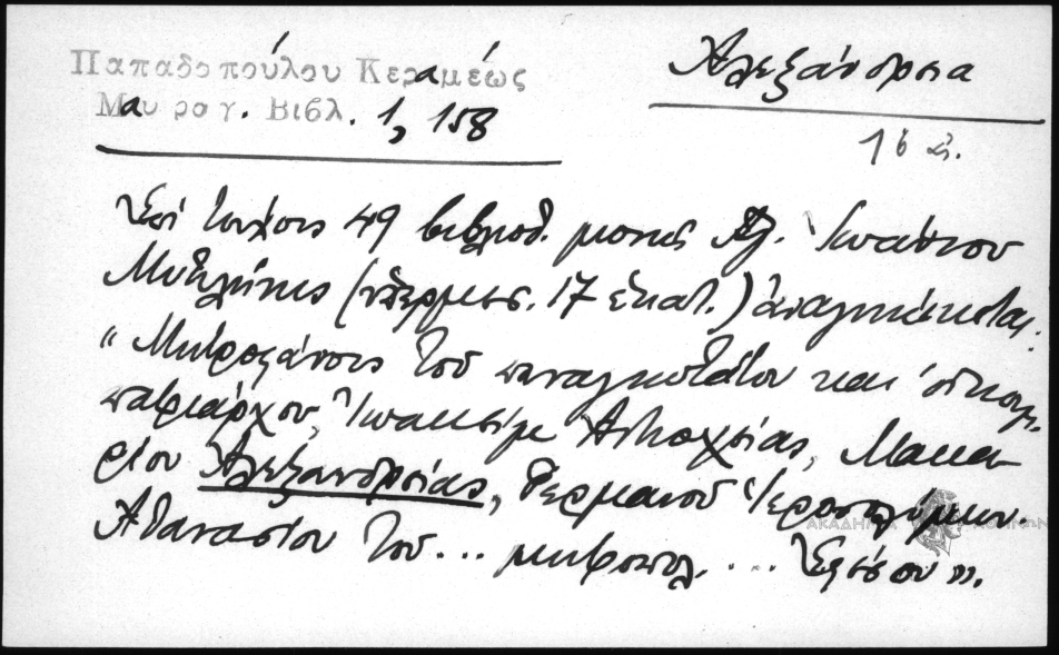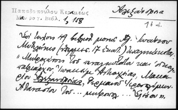 - Επί τεύχους 49 βιβλιοθ. μονής Αγ. Ιωάννου Μυτιλήνης( υπερμεσ. 17 εκατ.) αναγιγνώσκεται: "Μητροφάνης του παναγιωτάτου και οικουμ. πατριάρχου Ιωακείμ Αντιοχείας, Μακαρίου Αλεξανδρείας, Γερμανού Ιεροσολύμων. Αθανασίου του...μητροπολ....Εφέσου".