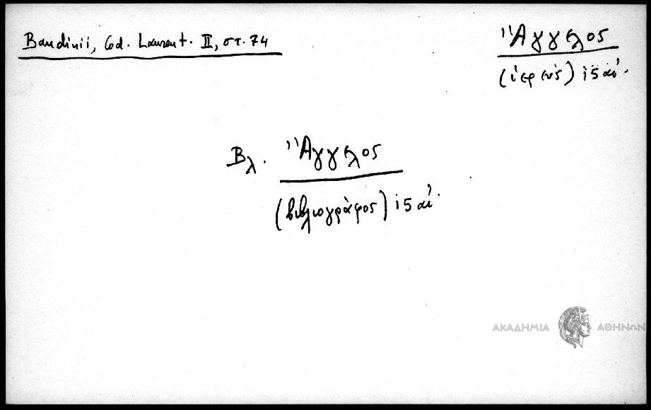 - βλ. Άγγελος (βιβλιογράφος) 15αι.