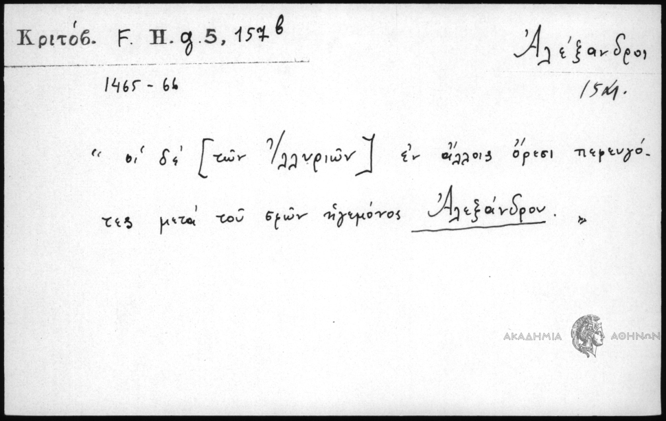- "Οι δε [των Ιλλυριών] εν άλλοις όρεσι πεφευγότες μετά του σφων ηγεμόνος Αλεξάνδρου."