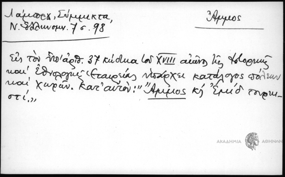 - Εις τον υπ΄ αριθ. 37 κώδικα του XVIII αιώνος της Ιστορικής και Εθνολογικής Εταιρείας υπάρχει κατάλογος πόλεων και χωρών. Κατ΄ αυτόν: "Άμμος και Εμίδ τουρκιστί"