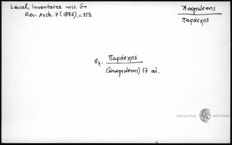 - βλ Παράσχος (αναγνώστης) 17 αι.