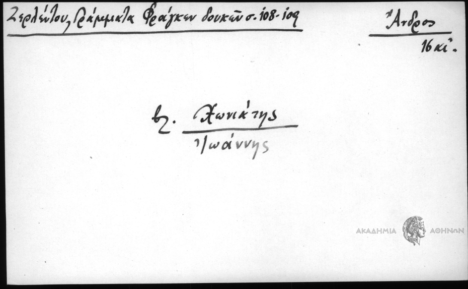 - Προσωπογραφικό και τοπωνυμικό αρχείο (15ος-19ος αι.)