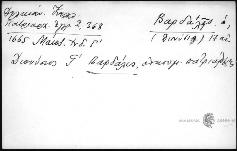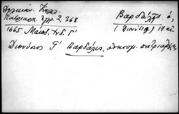Αναφορά στον οικουμενικό Πατριάρχη Διονύσιο Γ΄ Βαρδαλή.