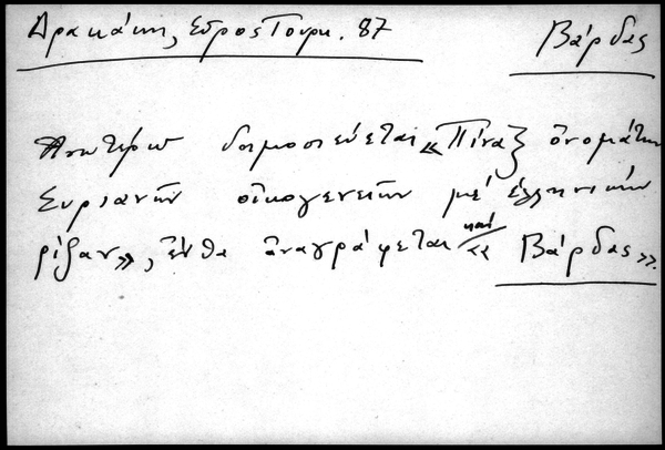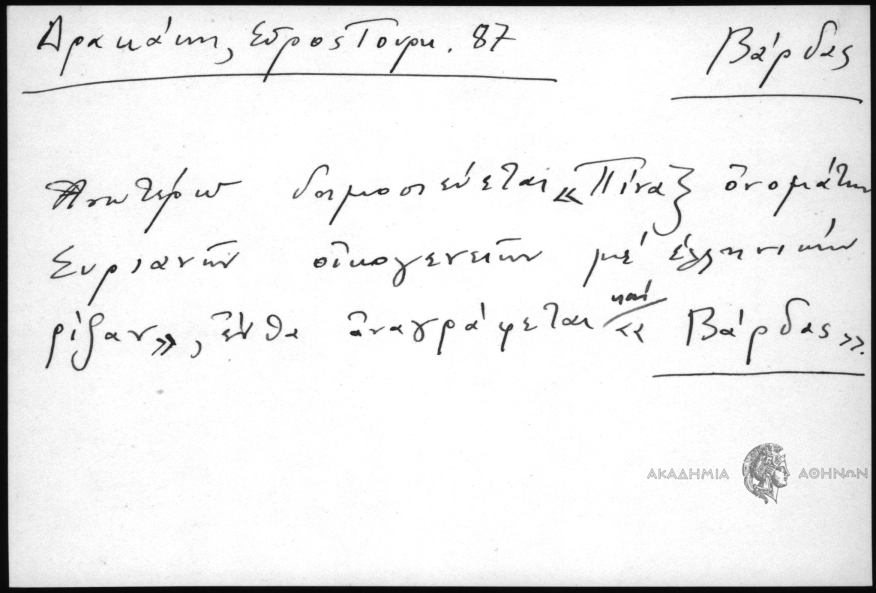- Ανωτέρω δημοσιεύεται "Πίναξ ονομάτων Συριανών οικογενειών με ελληνικήν ρίζαν", ένθα αναγράφεται και "Βάρδας".