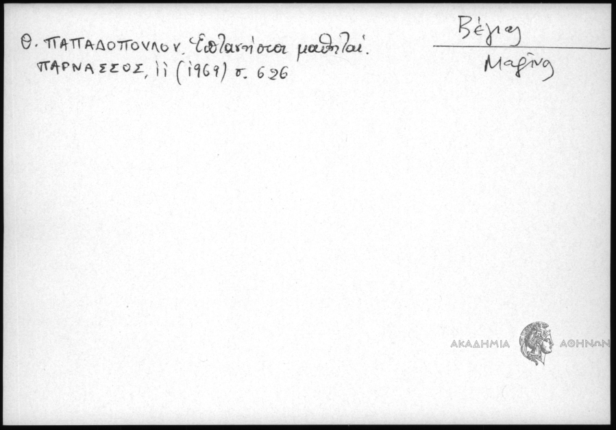 - Προσωπογραφικό και τοπωνυμικό αρχείο (15ος-19ος αι.)