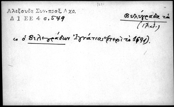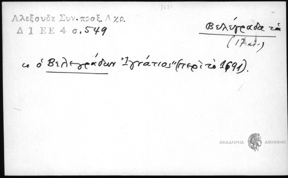 - ο Βελεγράδων Ιγνάτιος (περί το 1691).