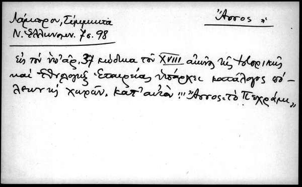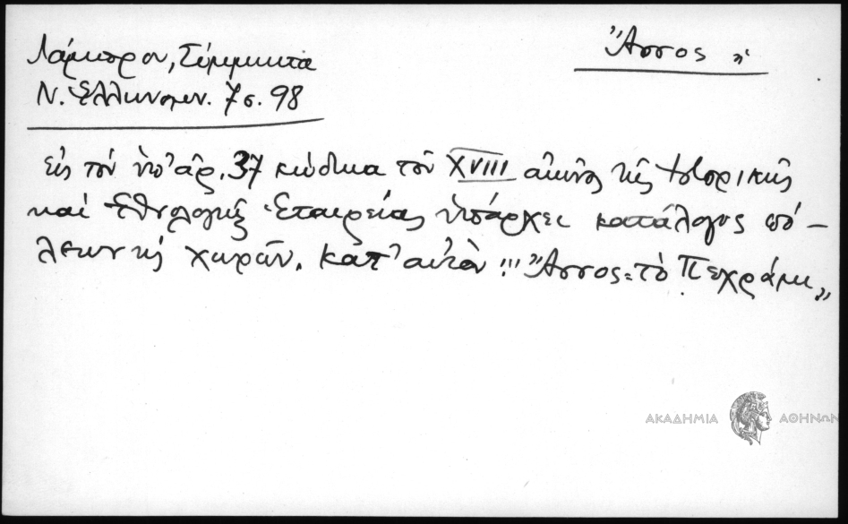 - Εις τον υπ΄ αρ. 37 κώδικα του XVIII αιώνος της Ιστορικής και Εθνολογικής Εταιρείας υπάρχει κατάλογος πόλεων και χωρών. Κατ΄ αυτόν: "Άσσος = το Πεχράμι"