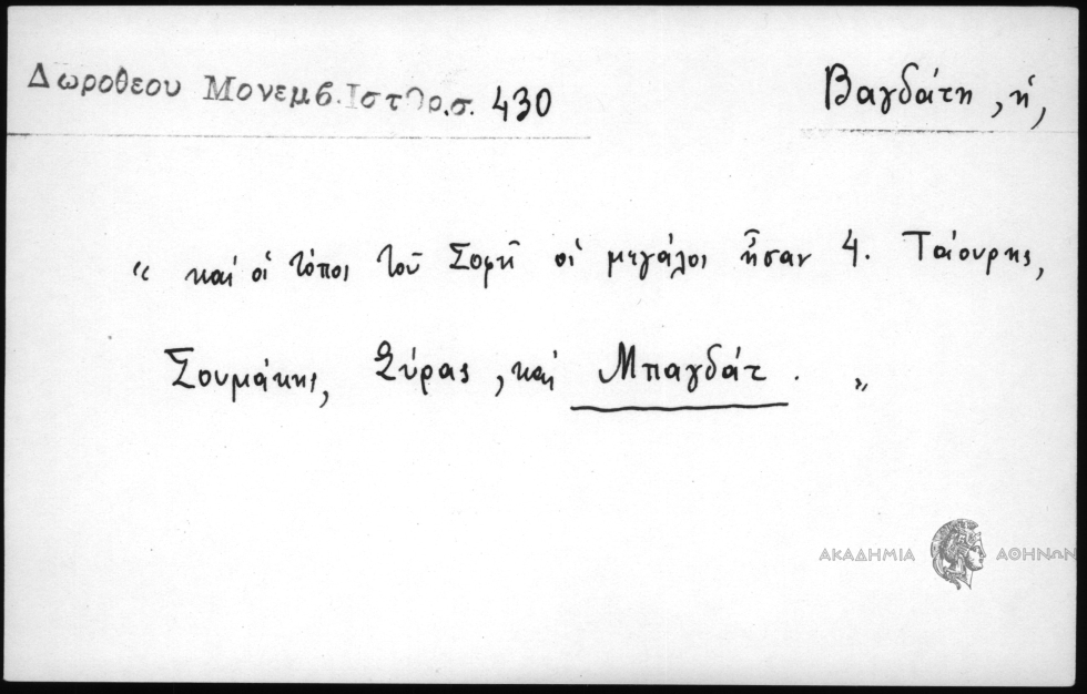 - Προσωπογραφικό και τοπωνυμικό αρχείο (15ος-19ος αι.)