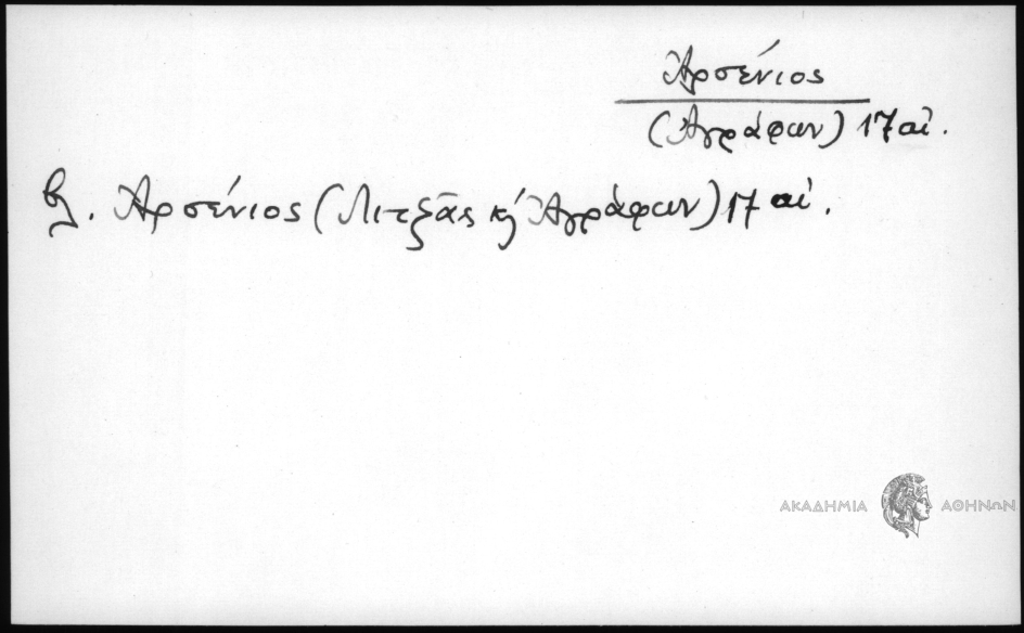 - Βλ. Αρσένιος (Λιτζάς και Αγράφων) 17 αι.