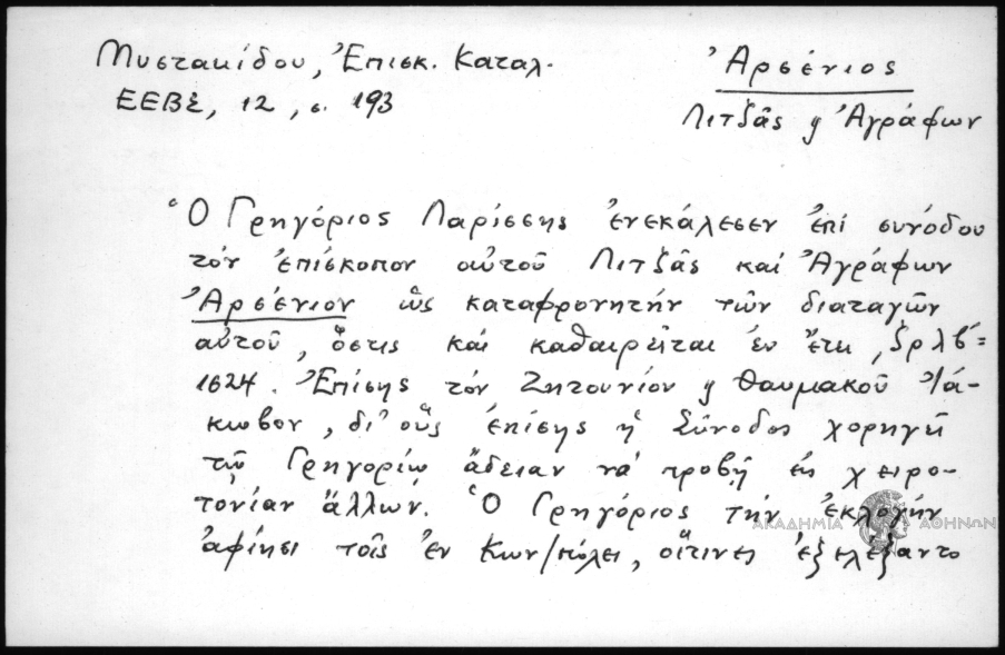 Γεγονός: Καθαίρεση του επισκόπου Λιτζάς και Αγράφων από τον μητροπολίτη Λαρίσης Γρηγόριο.