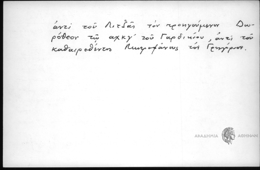 Γεγονός: Εκλογή του προηγούμενου Δωρόθεου αντί του επισκόπου Λιτζάς και Αγράφων Αρσενίου στην Κωνσταντινούπολη.