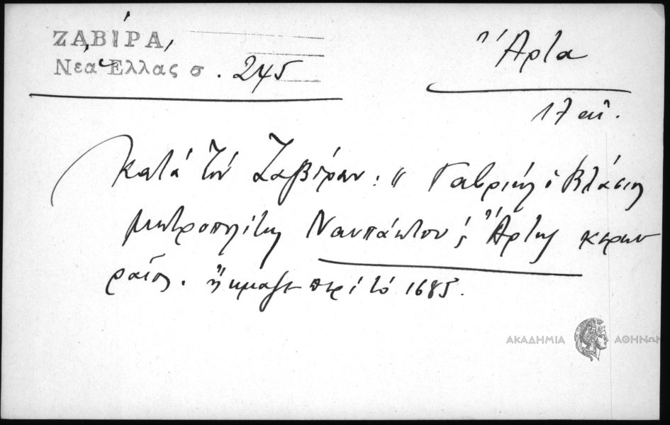 - Κατά Ζαβίρα: "Γαβριήλ ο Βλάσιος μητροπολίτης Ναυπάκτου και Άρτης Κερκυραίος. ήκμαζε περί το 1685.