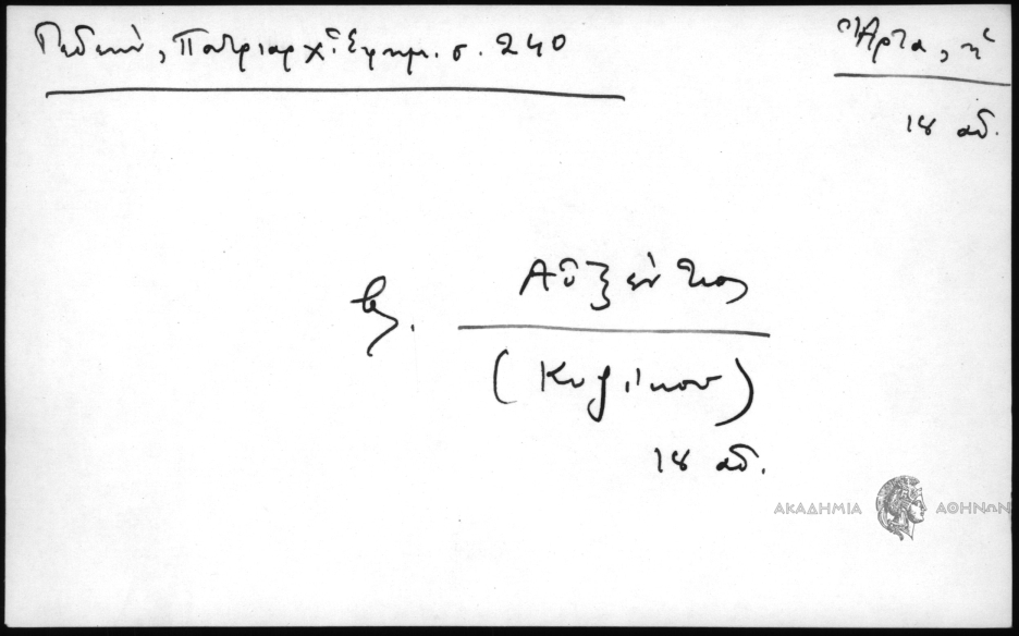 - Προσωπογραφικό και τοπωνυμικό αρχείο (15ος-19ος αι.)
