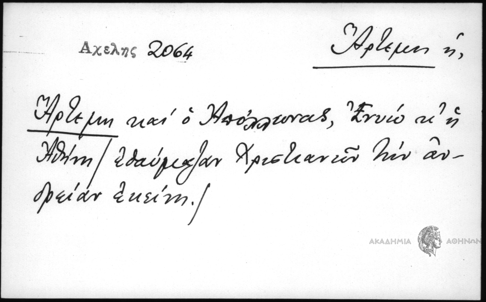 - Άρτεμη και ο Απόλλωνας, Ενυώ και η Αθήνη / εθαύμαζαν Χριστιανών την ανδρείαν εκείνη. /