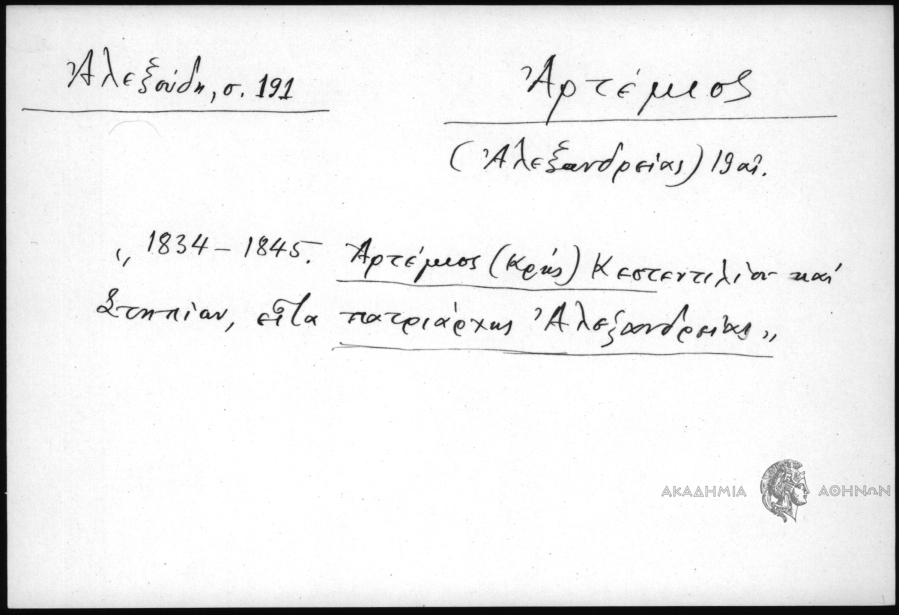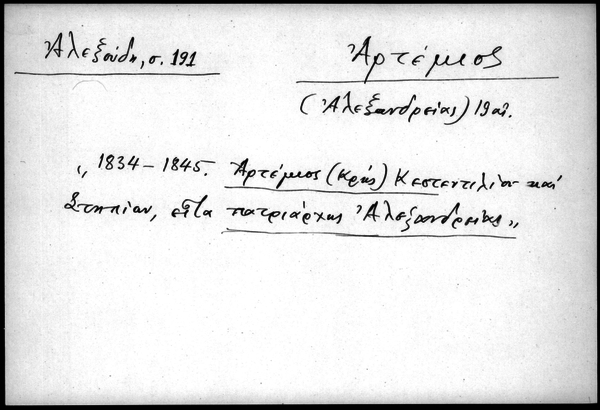 - "1834-1845. Αρτέμιος (Κρής) Κεστεντιλίου και Στηπίαν, είτα πατριάρχης Αλεξανδρείας"